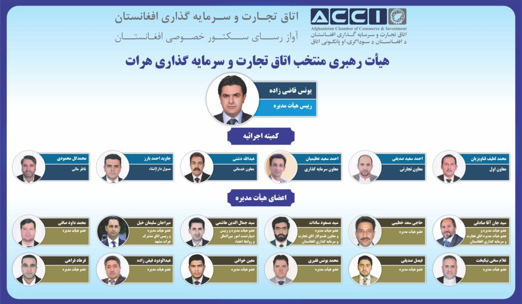 هیات مدیره اتاق تجارت و سرمایه گذاری ولایت هرات