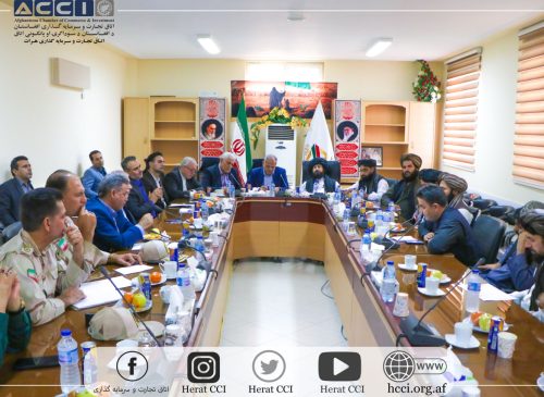 نشست فوقالعاده مقام محترم ریاست اتاق تجارت و سرمایهگذاری ولایت هرات، ریاست محترم ترانسپورت، ریاست محترم صنعت و تجارت، ریاست محترم گمرک، کمیساری عالی اسلامقلعه، ریاست محترم نمایندگی ارتباط خارجه وزارت محترم خارجه کشور در ولایت هرات و جمعی از …