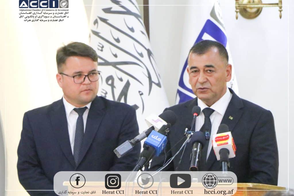 در آغاز این مراسم محترم محمد یونس قاضیزاده رئیس اتاق تجارت و سرمایه گذاری ولایت هرات به نمایندگی از هیات محترم رهبری اتاق تجارت و سرمایه گذاری ولایت هرات پیام خوشآمدید گویی خویش را به محضر مهمانان به عرض رساند و سپس در خصوص تلاش های سکتور خصوصی ولایت هرات به منظور گسترش روابط تجارتی افغانستان و ترکمنستان صحبت کرد و ابراز داشت که سکتور خصوصی افغانستان و مخصوصاً تاجران و سرمایه گذاران هرات آماده هستند تا در بازار های تجارتی و سرمایه گذاری ترکمنستان با سکتور خصوصی این کشور فعالیت های مشترک اقتصادی را انجام دهند.