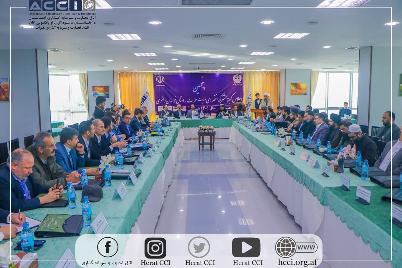 در آغاز این نشست محترم الحاج احمد سعید عظیمیان معاونیت سرمایهگذاری، محترم الحاج عبدالله دشتی معاونیت خدماتی، محترم الحاج انجینر محمد گل محمودی ریاست مالی، محترم الحاج عبدالودود فیضزاده عضو هیات رهبری و محترم محمد یوسف امین آمر اجرائیه اتاق تجارت و سرمایهگذاری ولایت هرات پیرامون بررسیهای شان از مشکلات موجود در حوزه انتقال اموال تجارتی از هرات با مقاصد کشورهای مختلف و از کشور های همسایه به هرات صحبت کردند و ابراز داشتند که باید برای تسهیل روند تجارت مشکلات ترانسپورتی حل گردد.