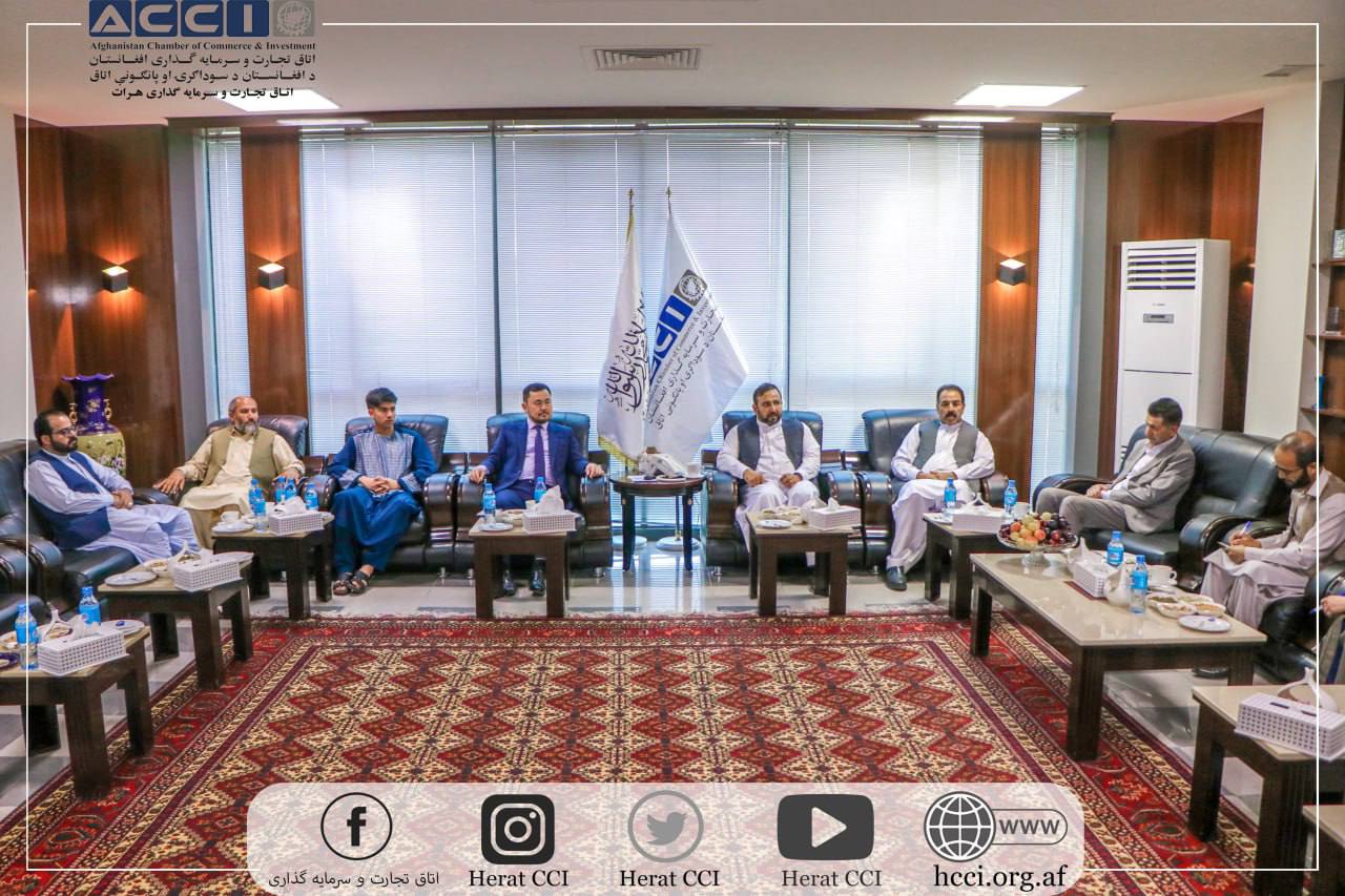 برگزاری نشست مشترک هیات محترم رهبری اتاق تجارت و سرمایهگذاری ولایت هرات با نمایندگان مختلف اتحادیههای سکتوری، نماینده محترم ریاست ترانسپورت زمینی ولایت هرات، اعضای محترم انجمن ترانسپورتی ولایت هرات، تاجران، سرمایهگذاران، صنعتکاران و نمایندگان موترداران و گفتگو روی مشکلات موجود ترانسپورتی در بنادر هرات.