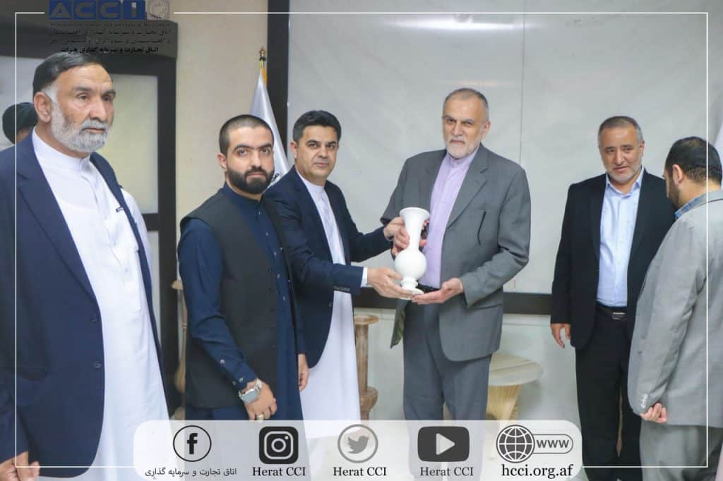 سفر هیات بلندپایه اقتصادی جمهوری اسلامی ایران به ولایت هرات و دیدار با رهبری محترم اتاق تجارت و سرمایهگذاری ولایت هرات، بازدید از خطآهن هرات-خواف و بخشهای از شهرک صنعتی ولایت هرات و گفتگو روی تقویت همکاریهای اقتصادی افغانستان-ایران.